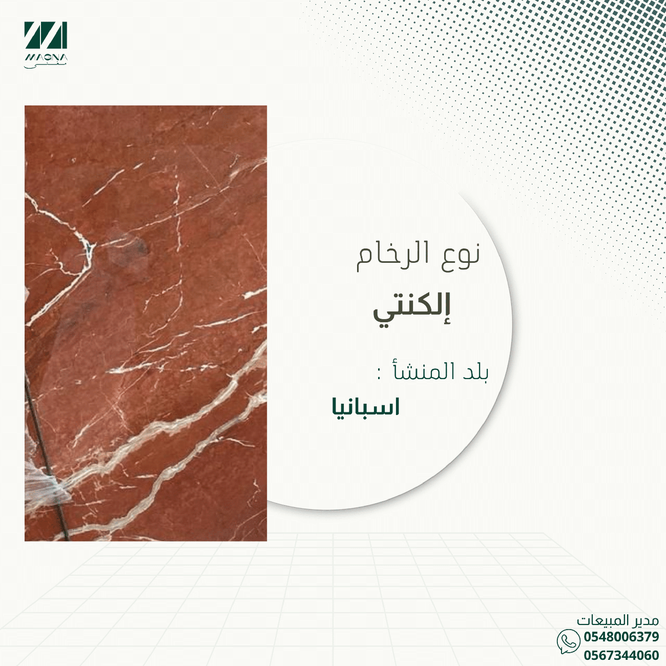 نقدّم لكم رخاماً طبيعيًا يتميّز بجودة استثنائية، اختيار دقيق من أفضل المحاجر، بألوان ونقوش طبيعية ساحرة. يتميز رخامنا بالصلابة، والتشطيب المتقن، والمقاومة العالية، ما يجعله الخيار المثالي للأرضيات، الجدران، وأعمال الديكور الراقية. الجودة التي تلمسها، والفخامة التي تراها.